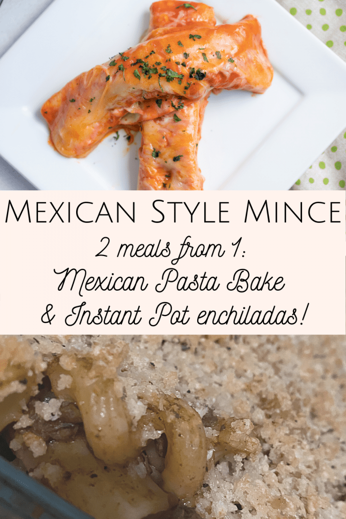 So, last week I made a big batch of Mexican style Mince that I then made into a Mexican Pasta Bake for tea on Thursday with the leftovers transformed into super quick Instant Pot Beef Enchiladas for tea on Friday!