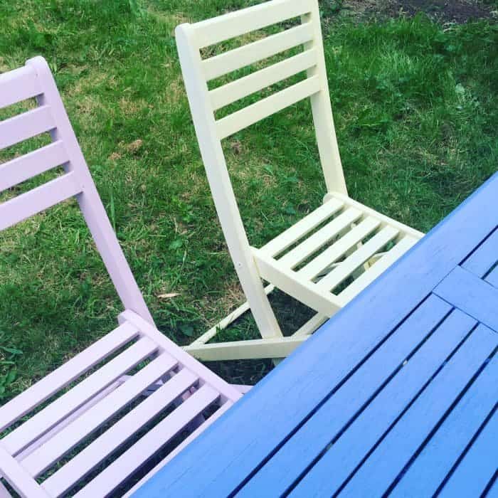 We don’t need to replace the table and chairs from last year as they still look amazing – I used tester pots of outdoor paint (Valspar from B&Q I think) to paint them in a bit of a mismatched style. Even though they’ve been out all Winter, they’ve held their colours really well and still make me smile when I see them as I feel like they’re very ‘me’.