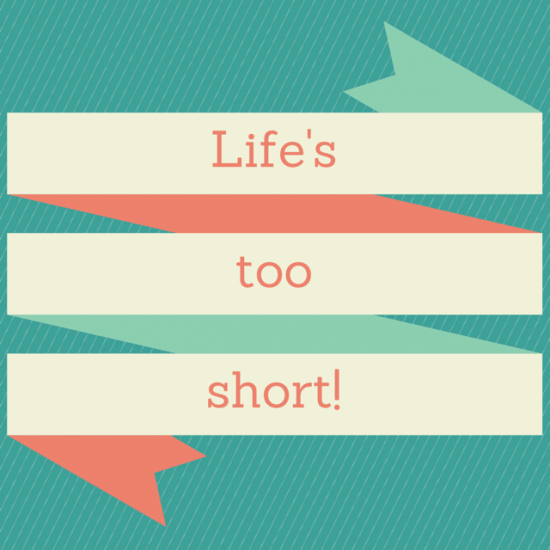 From personal experience I know that life really can be too short and you need to make the most of every moment. I must say this at least once a day out loud as well as saying it in my head numerous other times. It really helps with Miss Frugal if she’s having some sort of teen drama – I tell her that life’s too short to worry about whether her hair is curly or straight or the fact that she can’t find her favourite lip gloss. 😉