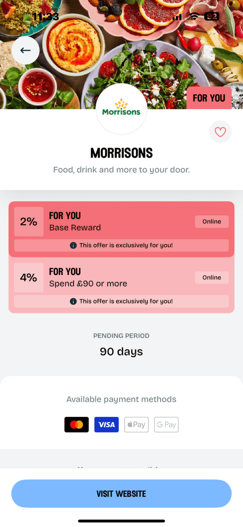 There’s loads of retailers signed up including Morrisons who are on there at the moment giving 2% cashback on spends under £90 and 4% for spends over £90. It says on the app that it’s just for me but I’m pretty sure it’s not an exclusive ‘Cass Only’ offer.