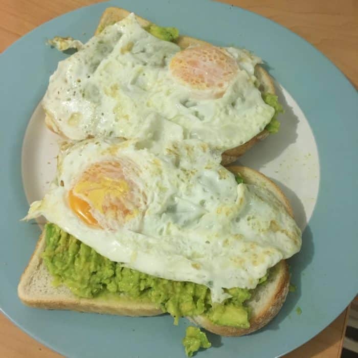 OK, this isn’t the most nutritious meal we ate this week but it was probably my favourite! It’s just avocado mashed with a little lime juice, spread on toast and topped with 2 eggs which are cooked on my pancake maker (don’t ask) with just a spray of oil. Amazing!