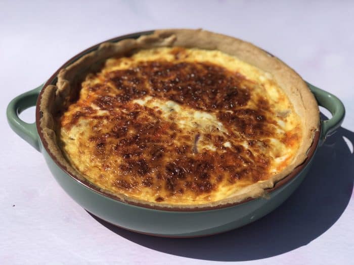 I also don’t fry up a whole pan of bacon cubes to add to it like my Mam used to when I make my own version because I’m not a fan of the saltiness that the bacon adds to the quiche – I prefer to use gammon leftovers in my quiche if I’m going for a quiche lorraine style quiche.