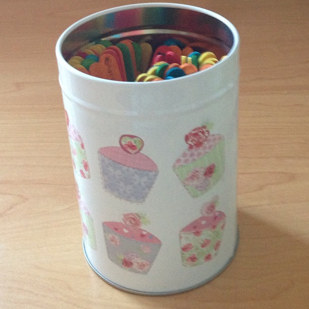 We decided to update our I’m bored jar and make our own version using coloured lolly sticks instead of paper – partly because we have about a thousand of these things in our craft cupboard and partly because Miss Frugal started writing our ideas out on bits of paper and I was irrationally irritated by the fact that all of her pieces of paper were different sizes and folded in different ways!