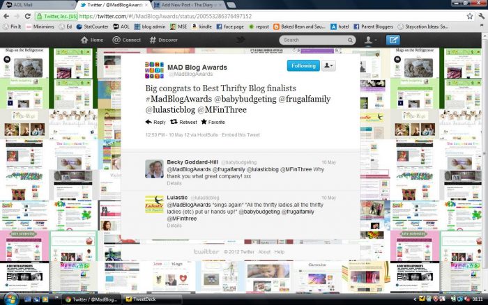 You know when you read something that makes you happy and you can't help but make a little squealy sound?Well on Thursday, I was on the way home from work on a busy train when my phone bleeped to tell me I'd been mentioned in a tweet. The tweet in question was from @MadBlogAwards to tell me I was one of the finalists in the Best Thrifty Blog category!Obviously, I was excited to realise that my lovely blog readers had been voting for me and that I was in the final five and I *may* have made a little snorty noise followed by a not so quiet squeal. The older gentleman (a dead ringer … [Read more...]