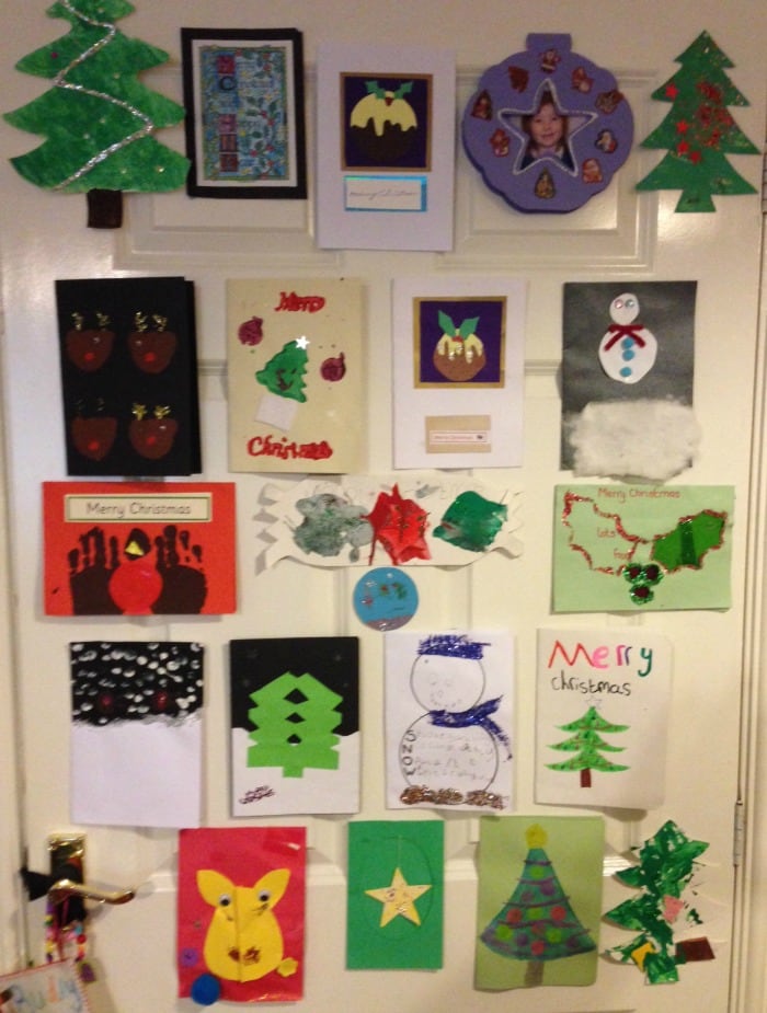 Every year when we unpack the Christmas decorations, I unpack all of their cards from years gone by and put them to one side. As a family, we decorate the tree and fill the house with all of our Christmas ornaments while we listen to Christmas carols but the homemade cards stay on the sideboard until the kids have gone to bed.