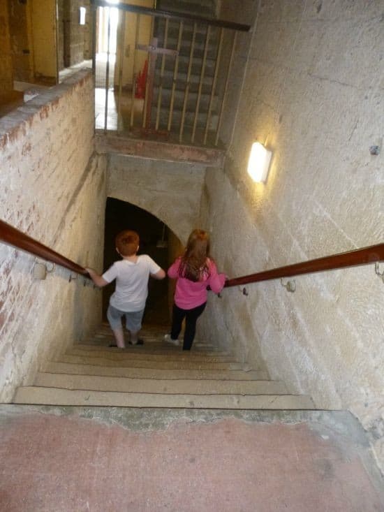 Belsay Hall was built in 1817 and in it’s day was a modern country house inspired by the ancient Classical temples of Greece. These days the hall is empty and displayed without furniture which means that it’s essentially (to our untrained eyes) just a big building with lots of rooms although even we could see the beauty in the architecture of the building. As there was a family fun event including medieval knights battling taking place in the castle at the other side of the gardens, the hall was practically deserted leaving us alone to explore the many rooms and the cellars!