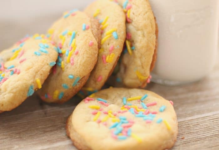 - Bake for 4 minutes and then remove from oven and add sprinkles.