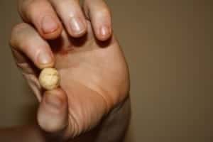Super easy – All you need to do is nibble all the chocolate from the outside of the Malteser without nibbling the crunchy bit in the middle. The winner is the first one to have a chocolate free Malteser. Mr Frugal is the undisputed champion of this one – here’s his event winning Malteser: