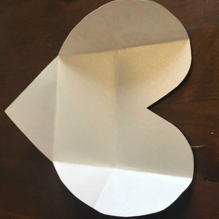 When you have your heart cut out, old the top part downwards. While you’re there fold the bottom part upwards – the pointy bottom part should overlap the fold you made using the bottom part.