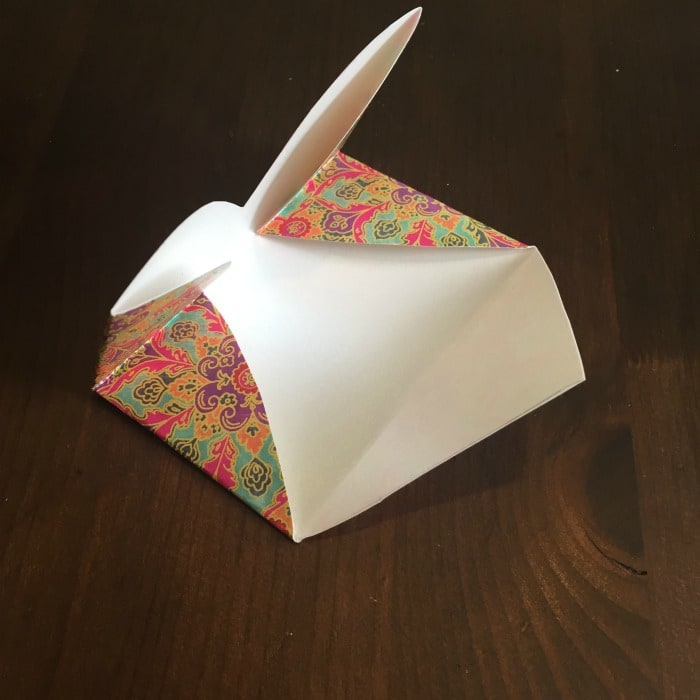 You’re almost done! Now fold the sides inward again and fold the bottom upwards, using the fold lines you already made.