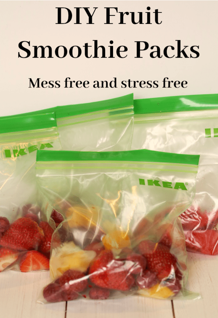 The best way to do this would be to chop any fruit you were going to use and freeze it on a baking tray in the freezer but honestly, that’s totally not necessary and just adds extra faff to the process. I just chop up all the fruit, pop it into all the bags and freeze them as they are. We just give the bag a gentle whack on the counter when we get it out to use to separate the fruit a little.