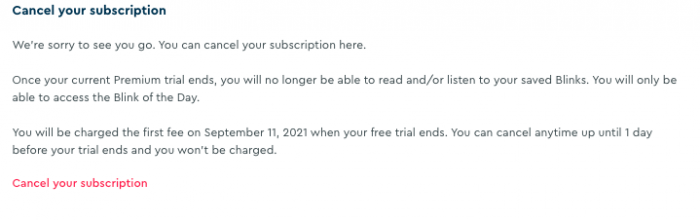 And, in case you’re interested because I’d never suggest setting up a free trial if it was hard to cancel then you just pop into settings and there’s an option to cancel just by clicking on a link to cancel.