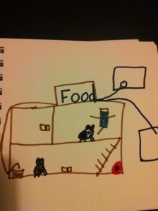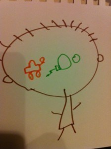 Never one to be left out, Master Frugal had a go at being an inventor aswell and invented a lollipop that’s not only in the shape of himself, it also has a toy car, a balloon and a Kinder egg in the centre of it ‘so you get a treat when you’re sad cos you’ve finished your lolly’ – can’t fault his thinking….