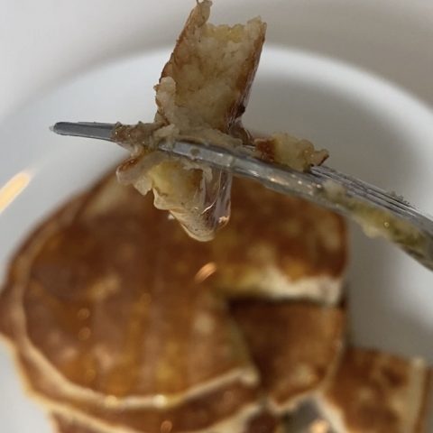 I decided to have a go at making a Tik Tok video yesterday morning and because I had no clue what I was doing and didn’t have anyone around to help hold my phone, I knew I was going to have to cook whatever recipe I chose with just one hand so I picked the simplest recipe that I know – banana pancakes.
