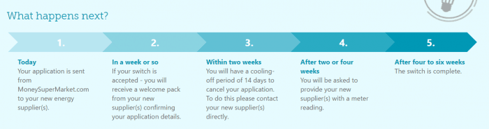 Step 4 – Choose the option to switch and fill in your details. I filled in my details which took about two minutes and got this as a timeline as to what I could expect: