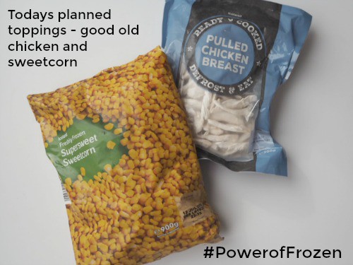 Any toppings you fancy – I used chicken and sweetcorn today with a bit of leftover ham.