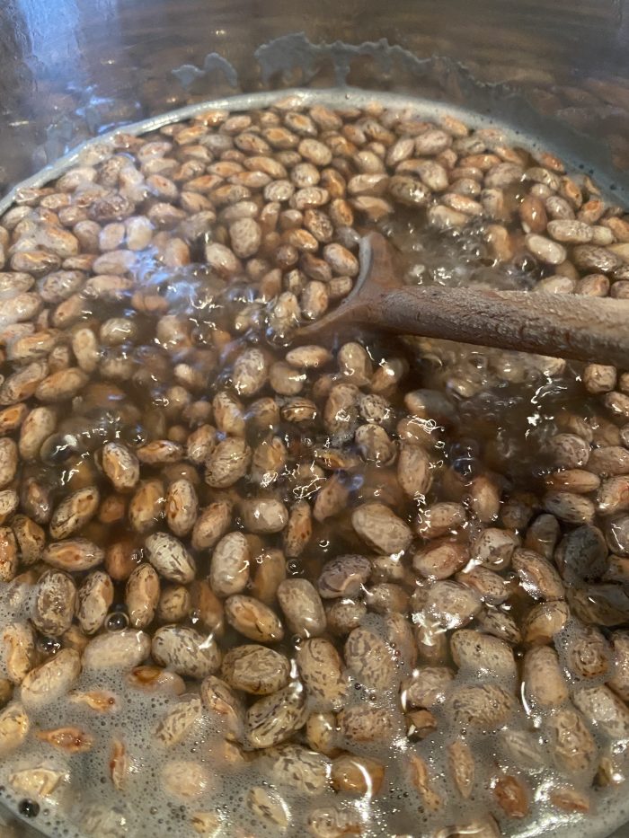 - pinto beans, cooked according to the instructions on tha pack - mine were boiled for 1hr and 10 mins and then drained ready for this recipe