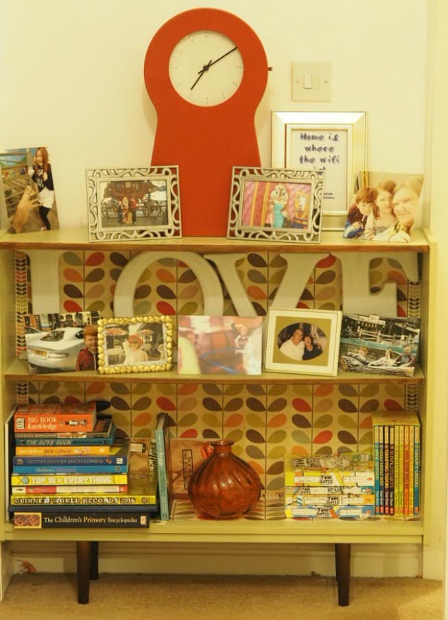 Between our bedroom and the bathroom there was a small space on the landing that I knew a bookcase would fit into if only I could find one that wasn’t just plain and boring which would fit perfectly in the gap. For years, I had the measurements of the gap in my purse ready to pounce on a piece of furniture if I found the right one and rather than buy just any piece of furniture I patiently waited until the right one came along. I didn’t want a boring flatpack unit because I try to only add furniture to the house that I love because we’re limited to what we can have spacewise. It was actually Mr Frugal who found the perfect bookshelf and I have been in love with it since he bought it for me as a Birthday present last year. It fits the gap perfectly and is very ‘me’.