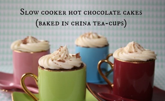 You could make slow cooker hot chocolate cakes which are baked in china tea cups which is a brilliant way to use some the beautiful teacups and saucers that you’ll no doubt come across.