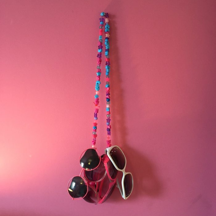 I shared this one in last week’s five frugal things post but basically, we used an old beaded necklace to make a hanger for sunglasses. We already had the necklace but you can pick them up in charity shops for pennies usually and you can use them to hang so much more than just sunglasses.