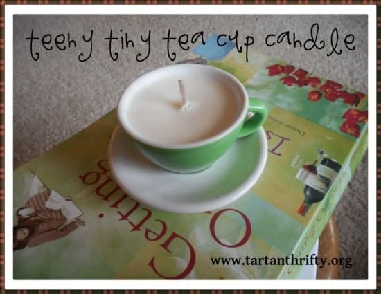 And another great use for some of the beautiful teacups and saucers that you come across is to make candles with them like Tartan Thrifty has done here.