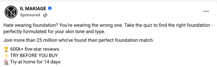 This is the post that kept popping up, alongside a video that showed how amazing Il Makiage foundation was (allegedly 😁)…
