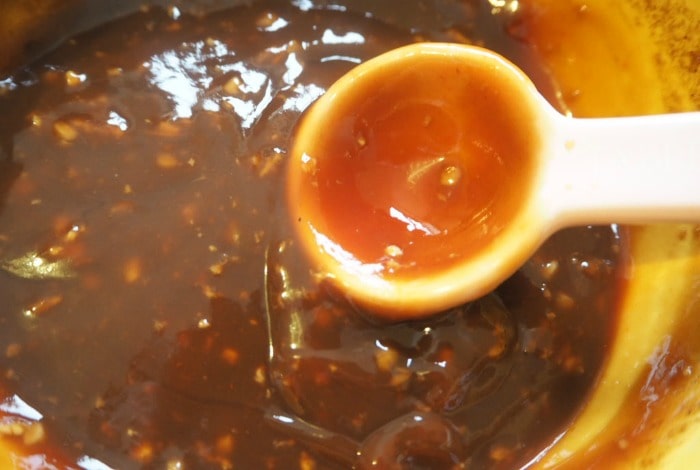 In a small bowl, mix the oyster sauce, ketchup, soy sauce, ginger and garlic together and then set that to one side to let the flavours develop.