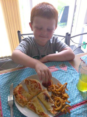Serve with curly fries and some more tomato ketchup.