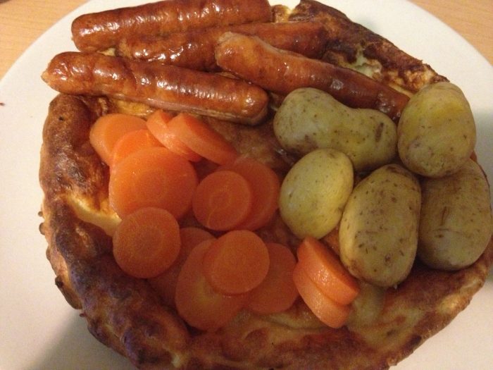 We make giant Yorkshire puddings using cake tins and fill it with sausages mash and veg, minced beef and onion, casseroles or stews – anything really. It’s also a great way to use up your Sunday lunch leftovers the following day.