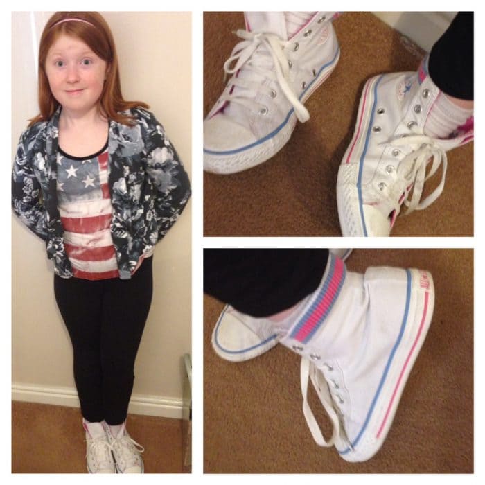 At the minute she’s going through a bit of a Converse phase – we bought her a pair a little while ago and she wore them with everything from leggings, tu-tu style skirts, maxi dresses and even her school uniform one day when I was at work and she conned her Dad in to letting her wear them.