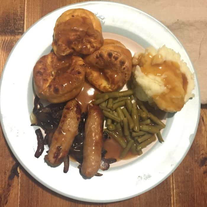 Main course – Posh bangers and mash with Yorkshire puddings (£3.01)