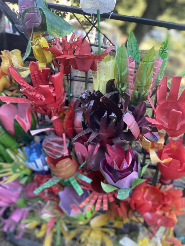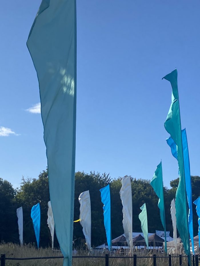 It’s super bright and colourful with lots of sustainable decorations around the site – these gorgeous flowers were made from plastic bottles and I loved that there was also a workshop with loads of kids enjoying making their own plastic bottle flowers in the main field too!