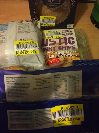 2. On the subject of reductions, we had a whole meal for three of us for just 65p from the reduction bay this week – some lovely sausages and chips which we added a few eggs too with some brioche bread rolls to dip in the yolks. Followed by a lovely cake which was delicious!