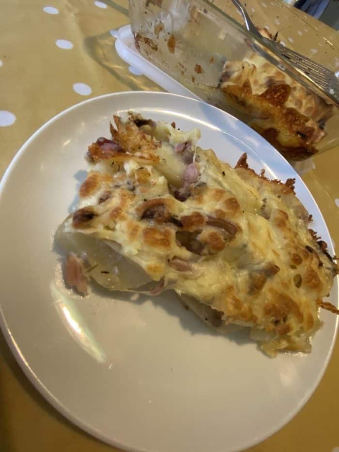 Rather than waste the potatoes, I peeled them and sliced them as finely as I could and made a cheesy potato bake which I added some onions, garlic and some bacon and Mr Frugal and I had that for a lovely lunch.