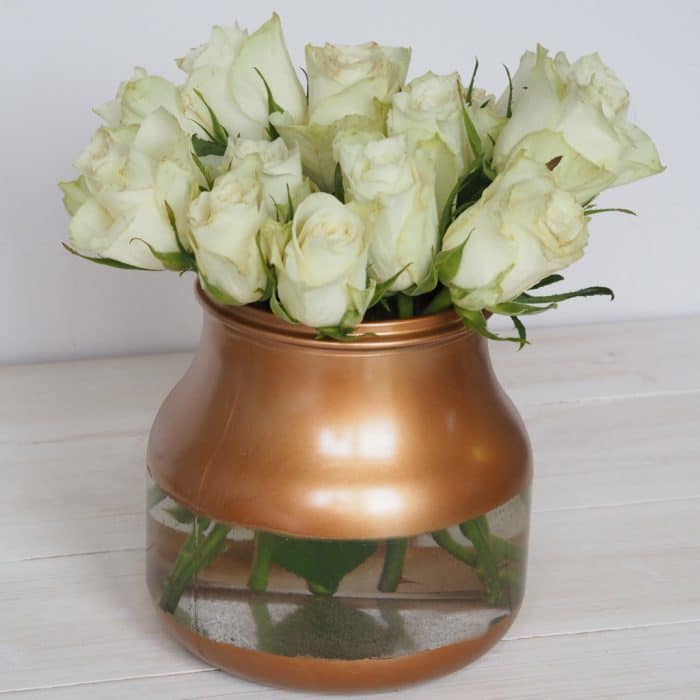 I love fresh flowers and even though roses aren’t my favourite, they look great in my new homemade vase!