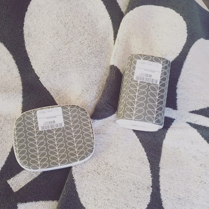 I got a big towel for £12.99, a smaller one for £7.99, a soap dish for £4.99 and a tumbler for £7.99 which is so much less than the RRP. I love Orla Kiely and I was very empted to buy similar accessories from her range from John Lewis at full price – it was only Mr Frugal exclaiming ‘HOW MUCH?’ in the middle of the bathroom department when I showed him a towel that stopped me. 😉 Even he’s pleased with my bargain bathroom makeover!