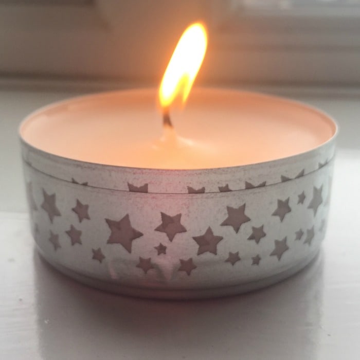 I used some of the maxi tealights that we got from Morrisons last year after we had a couple of powercuts in the space of a week so I had to go round the tealight twice with the washi tape but if you’re just using the normal little ones then once will be fine.