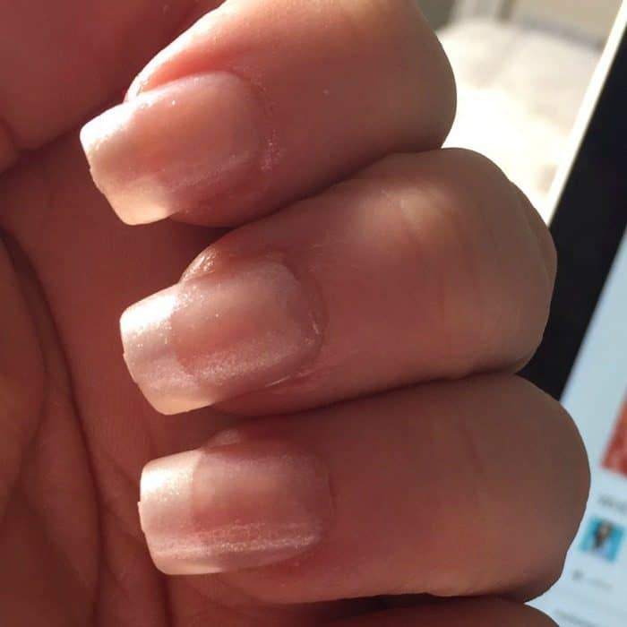 I filed them down to a rounder, shorter shape but I just couldn’t get away with them so I took them off. You could look at this from the point of view that I wasted money on the false nails or that I saved money on the acrylics. 😉