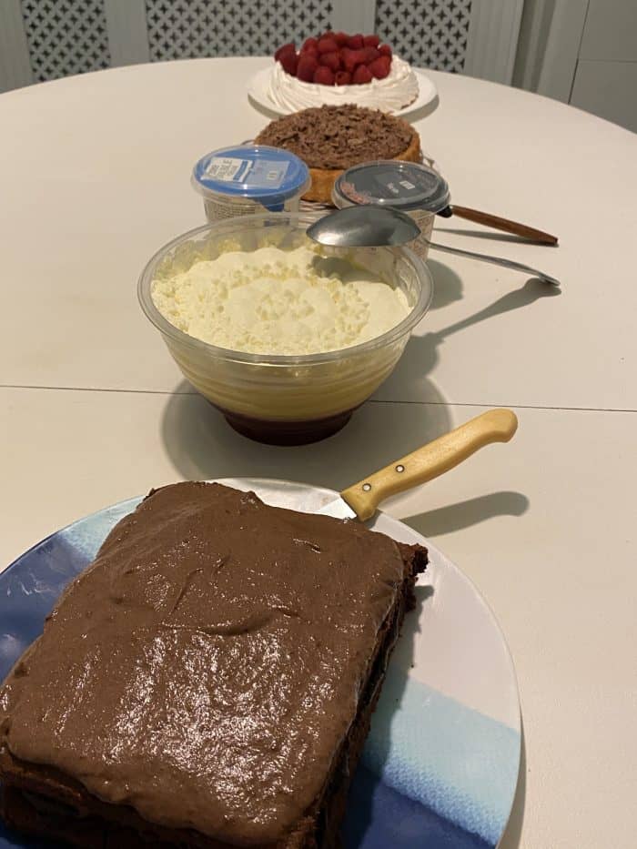 2) I didn’t splash out on fancy cakes and desserts for Christmas Day knowing although looking at the table you might think we did. We had a pavlova made with a pack of raspberries bought for 39p on Christmas Eve, out usual Baileys cake which is just Angel Delight made with milk and Baileys poured into a ready-made sponge flan case, a trifle bought on Christmas Eve for £1.50 and a chocolate cake that Master Frugal made and I iced with some leftover Baileys Angel Delight.