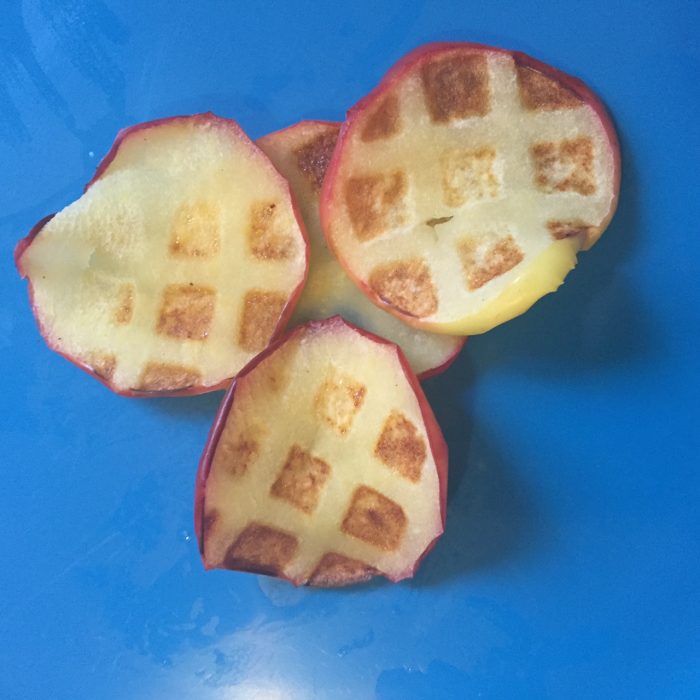 Slice an apple into thin slices and pop them on the waffle maker for 3-4 minutes and you get delicious apple crisps.