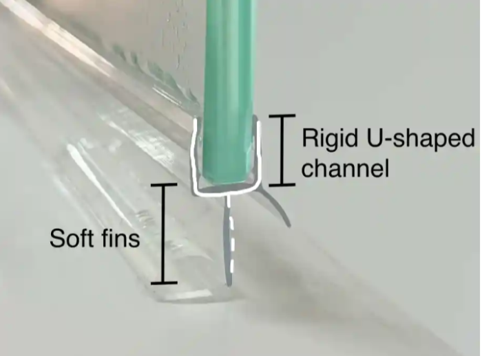 I did briefly think I could just pick one up anywhere and shove it on, but it turns out there’s a bit more to it. You’ve got the part that grips onto the glass (the rigid U channel) , and then the flexible bit (the flexible fin) that actually blocks the water, and that flexible part needs to be the right length. Too long and the door drags or won’t shut properly, too short and… well, you’re back to wet socks.