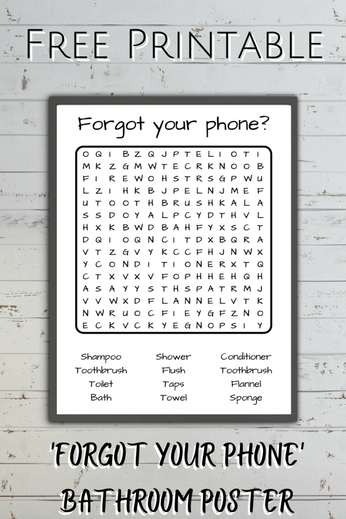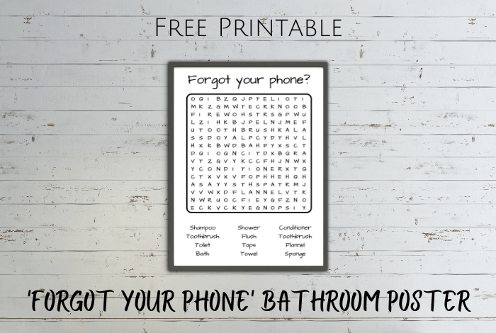I was scrolling through for some ideas for bathroom themed prints for our bathroom wall as I wanted to take down the canvas prints that I’ve had up since we moved in (in my defence, I do love them) and replace them with something more modern and I kept coming across Forgot Your Phone word searches like this.