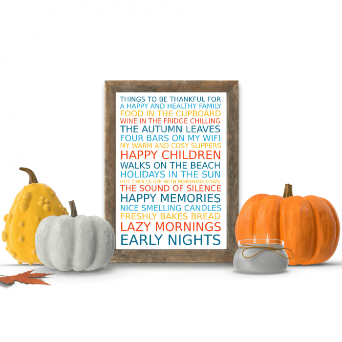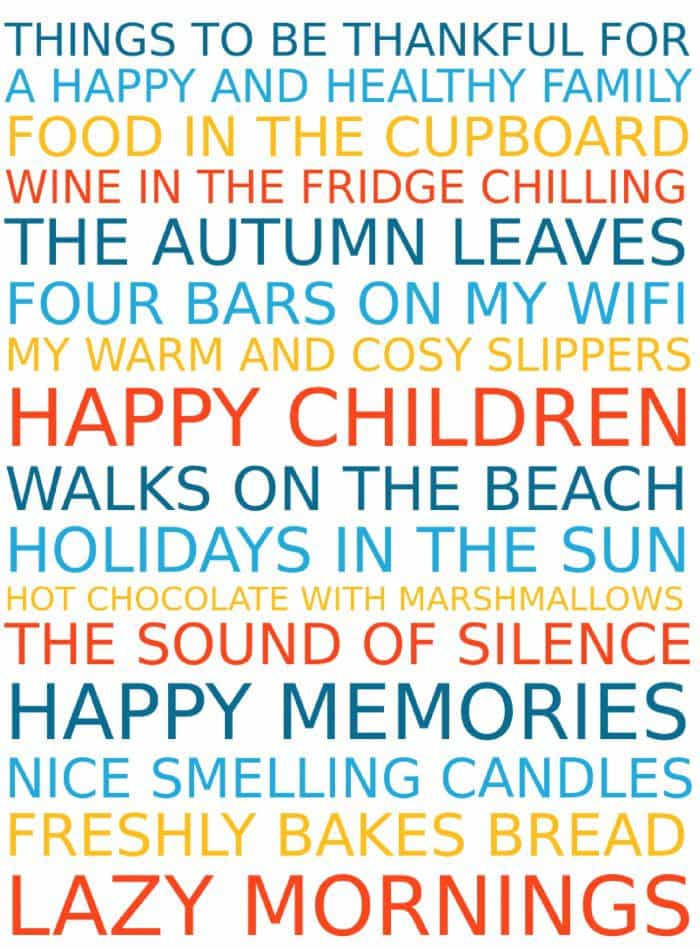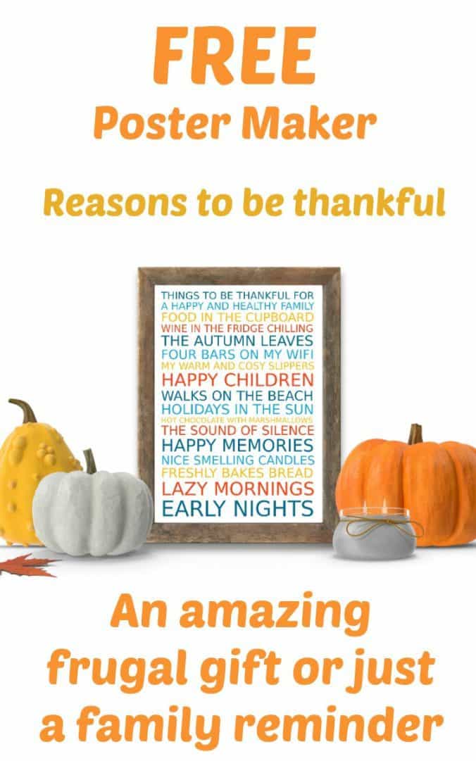 I’m trying to find more uses for my free Christmas poster maker tool so today, I’m sharing a lovely idea for a poster to share all of the things in your life that you’re thankful for.