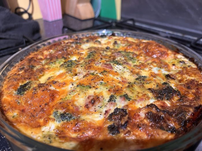 This crustless quiche is great for diabetics as it’s made from eggs, cheese, cottage cheese, brocolli and gammon.