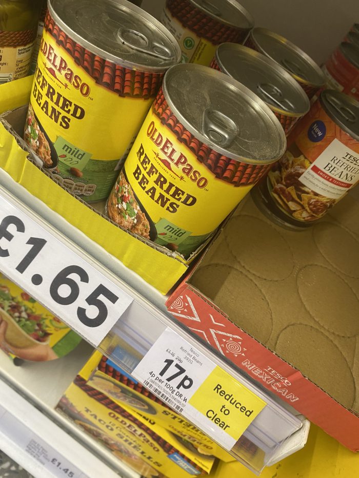 I stocked up on the 17p cans and then literally stood in Tesco googling the right beans to buy to make my own. I now have four cans of ready-made refried beans and am also the proud owner of a packet of dried Pinto beans which I plan to use to make my own at some point!