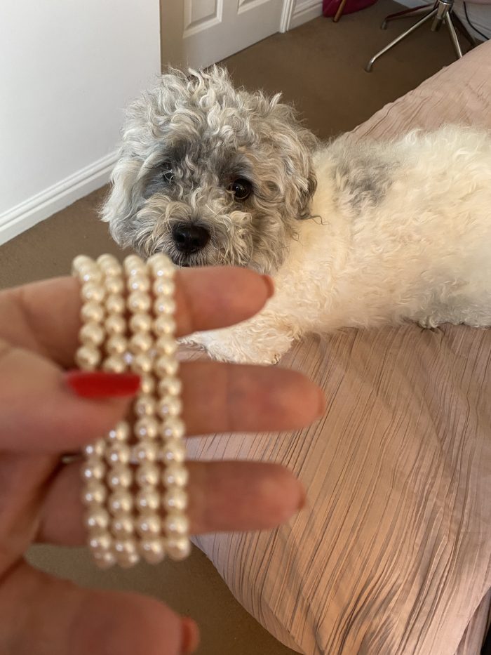 I know it’s not a great photo but I noticed Monty watching me and ended up focusing on him and not the bracelets.
