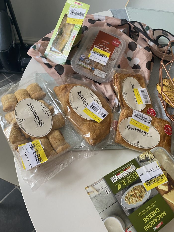 1) I bought a Spar Too Good To Go Magic bag for £3 one Sunday night a couple of weeks ago and came home with this little lot. We had a very lovely random picky tea with this little assortment although I did freeze the chicken and the macaroni cheese – the chicken has since been used in a pasta bake but the macaroni cheese was AWFUL! One mouthful and it went in the bin. 🙂