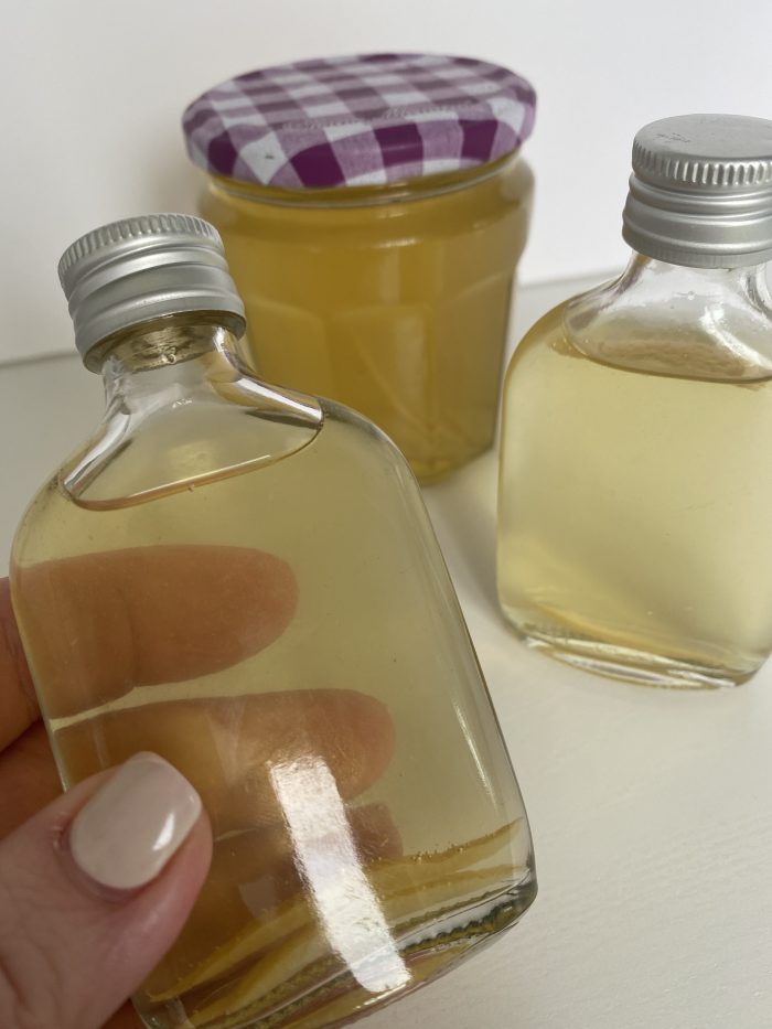 It’s basically the zest and juice of three lemons added to 75cl of vodka in a bottle or jar large enough to hold a litre of liquid. You just leave the lemon to infuse into the vodka for two weeks giving it a shake every day. After two weeks, add 60ml of water and 80g of sugar and let it all infuse for another two weeks, again giving it a shake every day or so.
