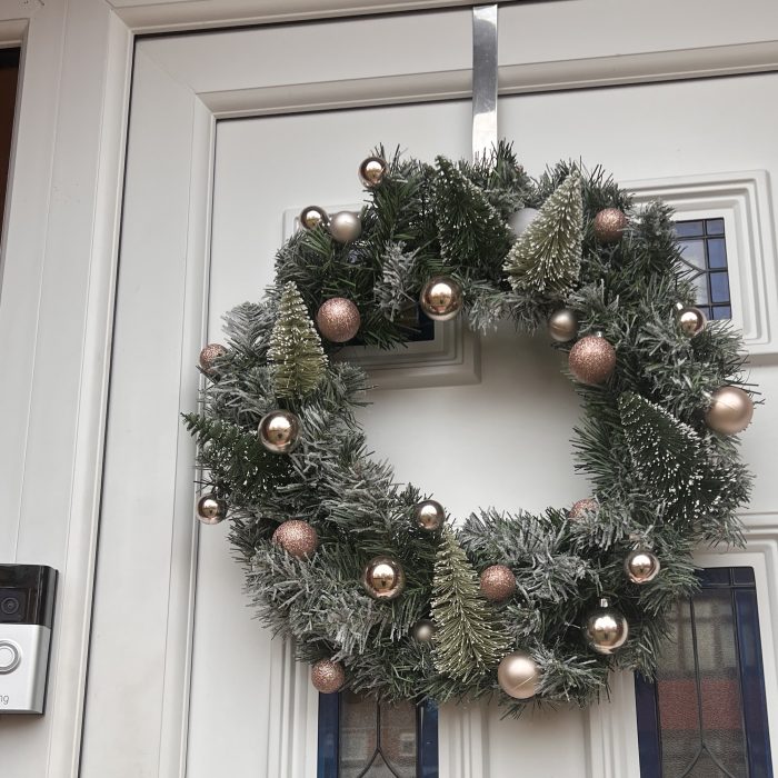 I got it home and took of all of the decorations and bought a cheap pack of mini baubles and some mini trees (again, in the sale) and attached them as artistically as I could and I managed to turn my bargain wreath and baubles into a Christmas wreath worthy of any front door! It’s on it’s fifth year now I think so it’s well worth what I paid for it.