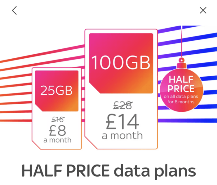 We called again and let Sky know that we were going to cancel and shared our reasons why and after being placed on hold for a couple of minutes, the above deal was magically added to our account and we were transferred to that. Worth a call if you’re with Sky as we got more than double the data for the same price we were paying.